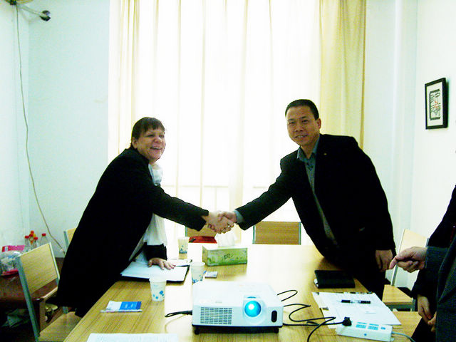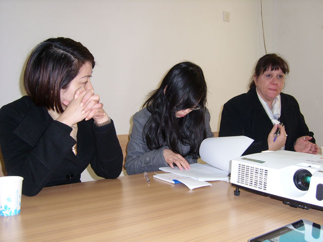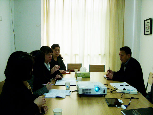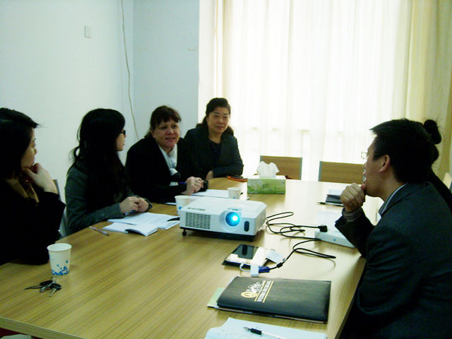 会上,首先乐三明院长介绍了我校的基本校情,及国际学院近几年积极引进国内外优质教育资源,构建学历教育国际合作办学、引进国外优质课程、教师海外研修、学生海外实习、海外汉语志愿者服务、来华留学和联合主办国际学术会议的情况。随后,西密歇根大学国际合作处Cathleen Fuller女士就办学条件和培养模式等做了详细的介绍,双方就合作开办“工程管理国际班”的课程设置,学费等疑难问题进行了深入的交流;最后双方合影留恋,表达了希望加强交往与尽早达成合作办学的愿望。