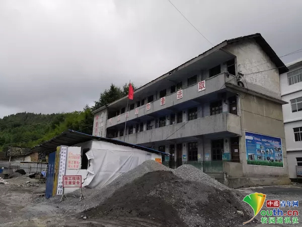中国青年网恩施7月20日电(通讯员 孙贤威 李欣阳 杜晴)恩施土家族苗族自治州建始县龙坪乡楂树坪村身处大山深处,由于交通不便,村里的孩子只能在村里唯一的小学——楂树坪小学读书,甚至更远的小孩子也只能来这个学校上课,由于山路不好走因此家离学校比较远的小朋友就只能借住在附近的阿姨家。然而楂树坪小学只有一栋破旧失修的教学楼,新的教学楼还在施工建设。整体教学环境比较落后。