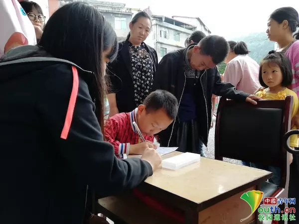 认真填写报名表的小朋友。(中国青年网通讯员 杜晴 摄)