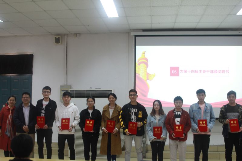 会上,叶素珍宣读了《关于建材学院团委2018-2019年度各组织任命的通知》,团委书记助理尤欣雅宣读了学生组织相关管理制度和规定,2018级工程管理专业潘雨、团委组织部部长温雪琴分别代表新晋委员和学生干部发言,共同提出要明确职责、行胜于言、认真学习、勤奋做事。