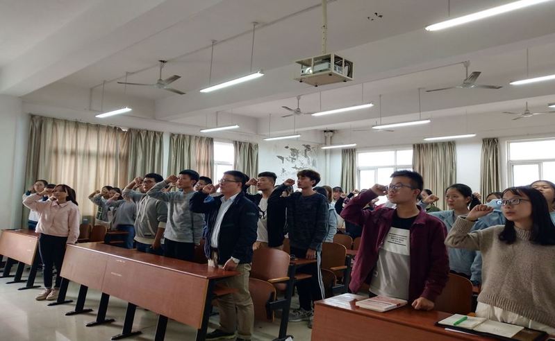 邢宽广在讲话中对学生班级表现出来的团结积极、活泼向上的集体氛围表示肯定。他说,大学生活是丰富多彩又是充满挑战的,我们要有自己的目标规划,希望大家珍惜美好的大学时光,要善于结交一群志同道合的朋友,培养一种兴趣爱好和过硬的技能本领,拥有一个积极乐观的心态和健康的身体。最后,他借用一句“火车跑的快不快,全靠火车头怎么带”来鼓励班团组织一定要发挥榜样带头作用,与同学们共同成长、共同进步。