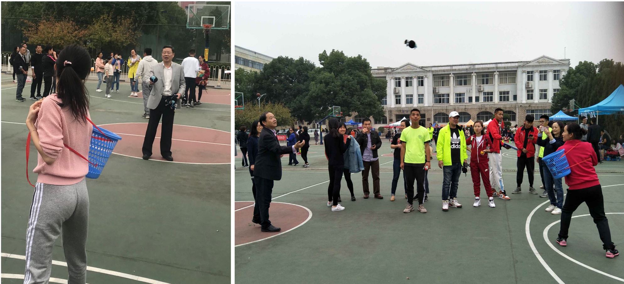党总支书记张赟、院长王超、党总支副书记邢宽广与老师们一起协作配合,共同完成趣味运动项目,其他老师的欢呼加油的团结和谐气氛,得到了场边其他学院老师的阵阵掌声。校长胡仲军、党委副书记许邦官也兴致勃勃地与我院教师共同完成了趣味项目。