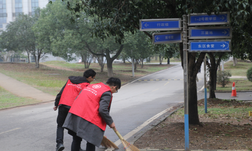 本次志愿活动共有50名志愿者参加,每10人分为一个小组,遍布校内各条主干道和师生主要活动区域。志愿者们根据提前安排的工作区域,自带清洁工具前往清扫,同学们既有分工又有合作,或扫或捡,或装或运,道路上的枯枝落叶、杂草杂物、白色垃圾等很快就被清扫干净,绿化带里的白色垃圾无法使用工具,也被大家直接用手一点点地清理出来。路过的老师和同学们纷纷人志愿者们认真负责的态度叫好,点赞!