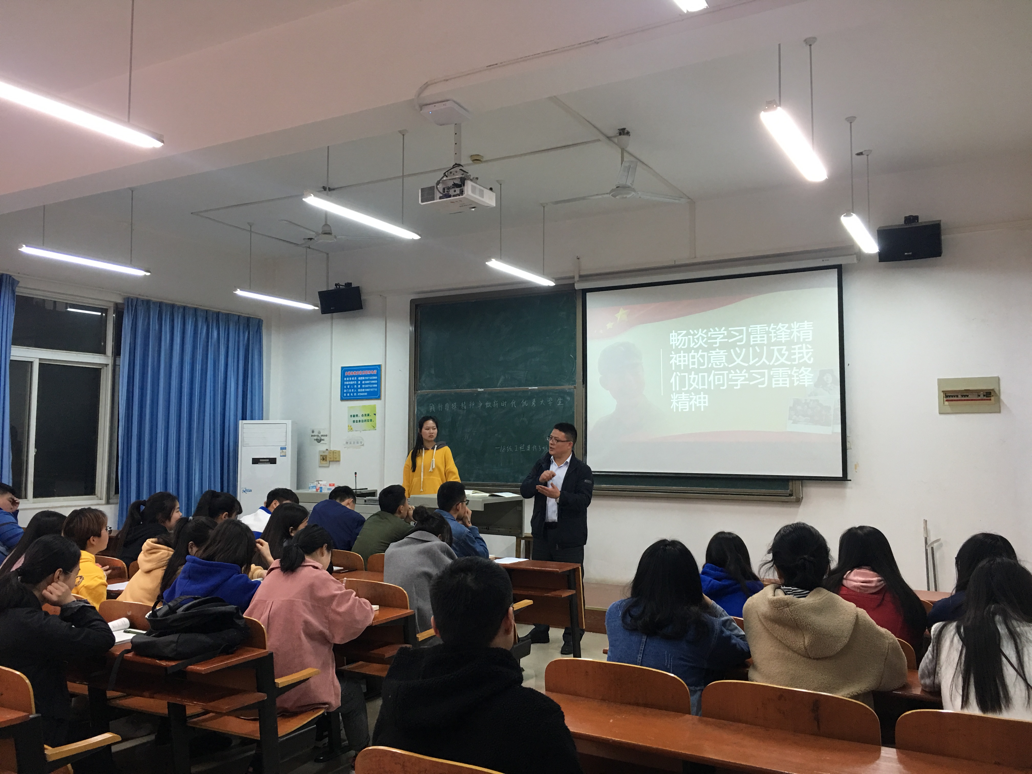 在材料班,同学们还齐声同唱了《学习雷锋好榜样》的歌曲。“小时候,老师会常常向我们讲到雷锋叔叔的故事和雷锋精神,随着时间的流逝我们也许不能完整讲述雷锋叔叔的每一个故事,但雷锋精神却已经潜移默化于我们每个人的心中,让我们铭记雷锋故事,发扬雷锋精神,争做新时代青年!”副班长许津瑞在班会总结中说道。