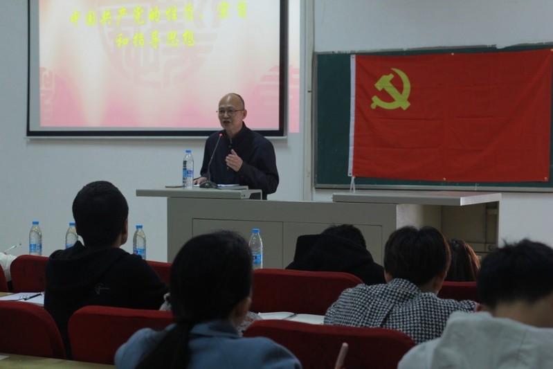 黄颂围绕“中国共产党的性质、宗旨和指导思想”的主题作《中国共产党的性质与大学生思想素质修炼》的辅导报告。他说,中国共产党是一个纪律严明的政治组织,理想宏伟,使命光荣,并用“1234”阐释了我们党的性质,即“一个核心,两个先锋队,三个代表体现,四个阶段的目标理想”。他在报告中多次引用了习近平总书记的青年成长故事、亲民为民事迹、治党重要理念等,用简洁生动的事例和语言,帮助同学们进一步强化了对党的性质、宗旨、目标和理想的正确认识,告诉同学们要树立坚定理想信念,在思想行动上紧跟党走,自觉加强自身修养修炼,敢于自我改造。他以“三讲三重”即讲政治、讲学习、讲责任,重实际、重实践、重实效,来勉励和激励同学们做政治上的清白人,做思想上的坚定者,立志做堪当中华民族伟大复兴重任的接班人。