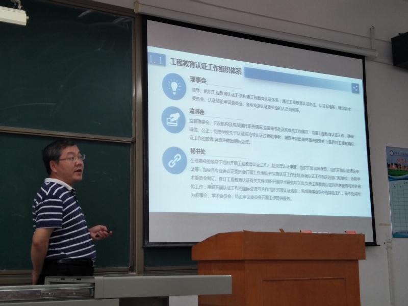 王亮清教授在报告中指出,专业认证工作有着非常严谨、规范的操作程序,考核目标、考核标准、考核要求以及考核过程都非常明确具体,需要大家共同参与、齐心协力来完成。他表示,开展工程教育认证对于提高工程教育质量和竞争力,增强工程教育人才培养与产业发展的适应性有着十分重要的现实意义。他结合中国地质大学(武汉)申请工程专业认证的工作实际,提出了“逐条学习领会国家标准体系,掌握熟悉认证流程,加强规范管理,主动参与专业认证相关培训,邀请专家来校指导”等具体建议。