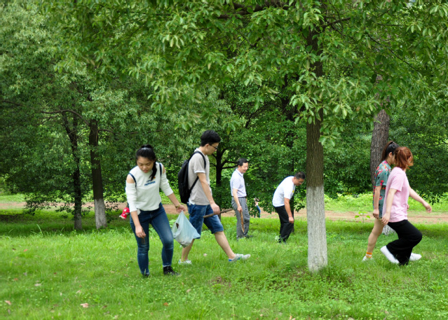 在图书馆北边一带,学院全体师生党员开始校园保洁劳动。“你们哪个表现好,我就给哪个奖励。”建材学院党委副书记邢宽广一边劳动,一边有说有笑。