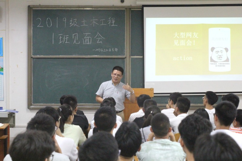 本网讯(通讯员 龚国成)9月8日晚18:30,我院2019级新生8个班级在4号教学楼分别举行入学第一次班会,开展大学第一课。各班班级事务助理主持。