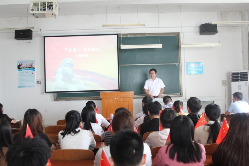 张赟作“不忘初心、牢记使命”主题教育动员讲话,针对性地提出了学生党员贯彻落实主题教育总要求的具体内容和安排。随后,他以《牢记初心使命,做新时代青年》主题为57名党员上党课,阐释了主题教育的时代背景和重大意义,重点解读了习近平新时代中国特色社会主义思想的主要内容,强调要在“把握总要求,坚持四到位,落实五目标,做到八个一”等方面落实党员责任,努力实现自我提升,激励青年党员着力提高思想境界和品德修为,真正在同学们中间起到引领示范和先锋模范作用。