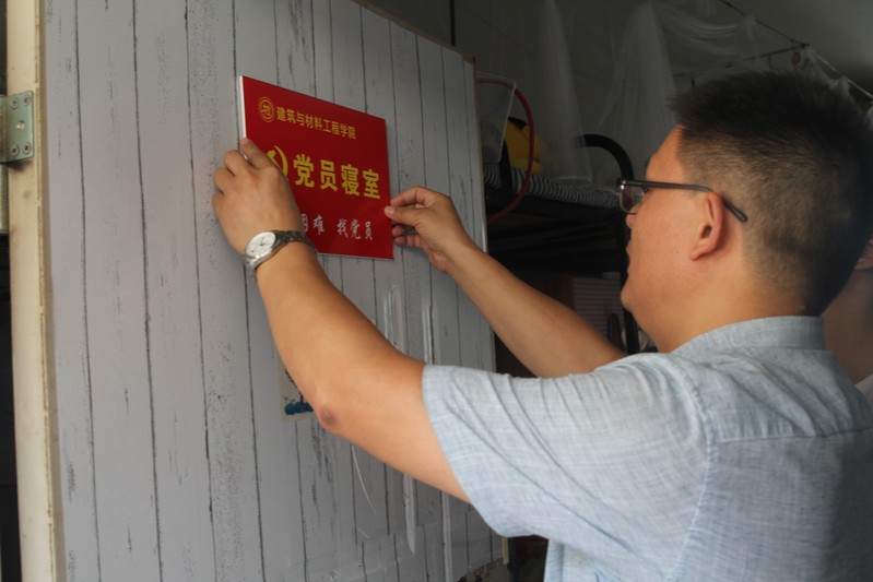 下午2点,按照院党总支主题教育工作安排,邢宽广、叶素珍、池家飞、何晖以及部分学生党员代表,一起前往西区8栋、东区9栋学生宿舍,逐一走访学生寝室,并分别为31个学生党员寝室挂牌。