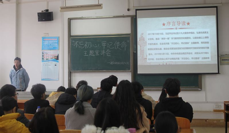 团委组织部委员陈珂安围绕“不忘初心,牢记使命”主题教育的背景、内涵、意义及要求等内容进行了宣讲,重点指出了大学生应如何对照“讲政治、有信念,讲规矩、有纪律,讲道德、有品行,讲奉献、有作为”要求完善自我、提升自我,提出了学生干部在主题教育中如何做、做什么、怎么做的想法和建议。