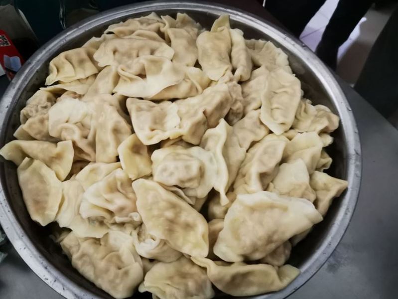饺子出锅时,清香溢满食堂,所有人都充满着期待,希望尽快的尝到自己的劳动成果。当蘸有酱醋的饺子吃到嘴里时,每个人的脸上都挂着幸福、满足的笑容。