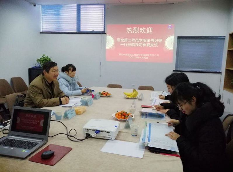 本网讯(通讯员 李菁)为推进学院实习就业基地建设而工作,2020年1月9日上午,学院分党委书记张赟、土木系主任马朝霞、工管系专业负责人李菁一行前往湖北中诚信达工程造价咨询有限公司考察调研。