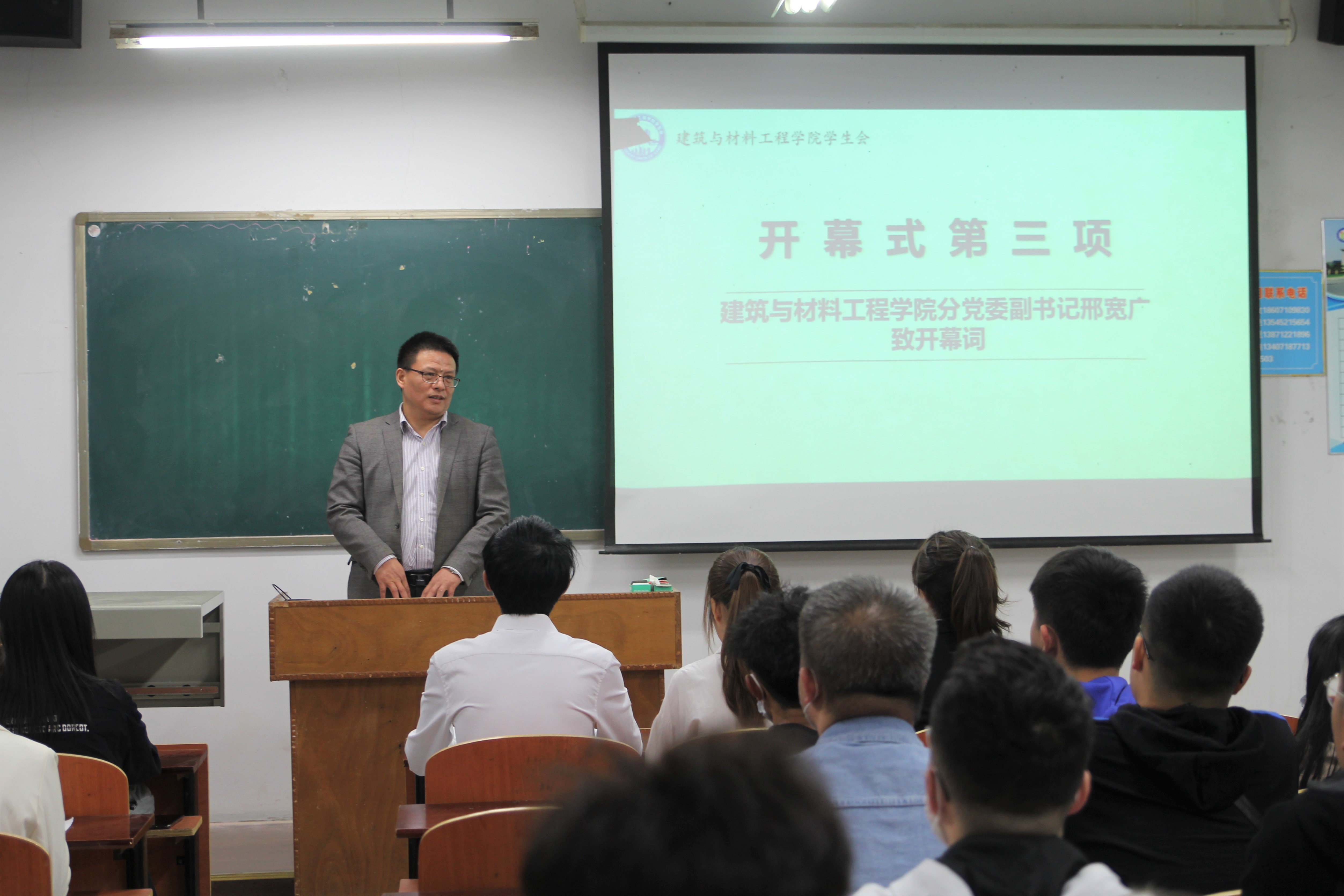 韩晓芳代表校学生会致贺词。她表示,一年来,建材院学生团学组织在学院发展、学风建设、文明创建、志愿服务和文化传承等方面取得可喜成绩,在学生与学校之间中起到桥梁和纽带的作用。