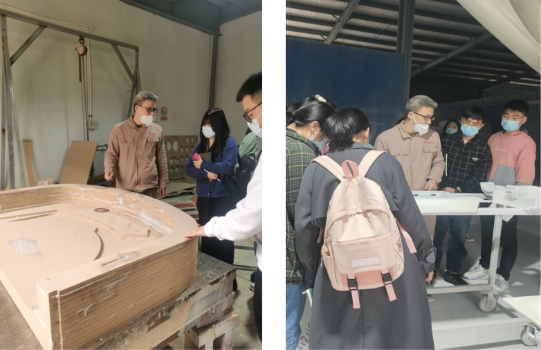 此次参观按照《复合材料学》的教学安排进行,在参观过程中,企业工程师首先为同学们详细的介绍了模具生产工艺流程,介绍完毕后又带领同学们参观了生产车间。从设计图纸确定工艺方案,到搭建毛胚进行加工,以及最后的产品的脱膜和装配都进行了详细的介绍。企业工程师对同学们在参观过程中提出的问题都进行了详细的解答。同学们表示此次现场参观对自己受益匪浅。