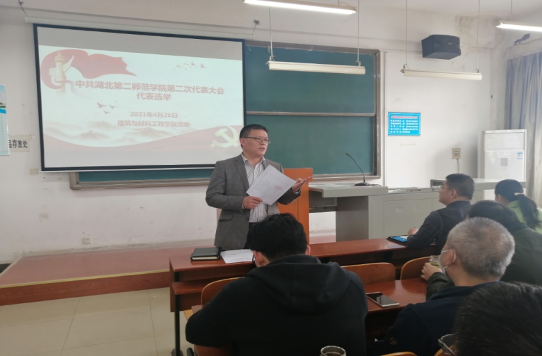 邢宽广向大会汇报了学院党委有关学校第二次党代会代表选举的前期工作,传达了校党委组织部《关于同意建筑与材料工程学院党委报来的出席中共湖北第二师范学院第二次代表大会代表候选人预备人选的批复》。同时,他通报了此次党员代表大会的到会情况,介绍选举方法及投票注意事项,要求全体参会党员讲党性,以对学院发展高度负责的精神严肃认真地投出自己神圣的一票。