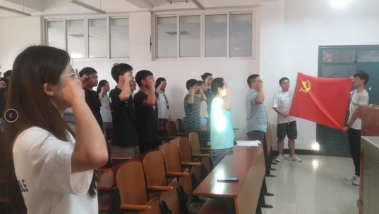 本网讯(通讯员 王骏 龚国成)6月22日晚,建筑与材料工程学院在6号实验楼301教室举行新党员入党宣誓暨学生党支部主题党日活动。院党委书记邢宽广领誓并讲话。党委副书记陈凌云、学生第一党支部书记叶素珍等参加,学生第二党支部书记王骏主持。