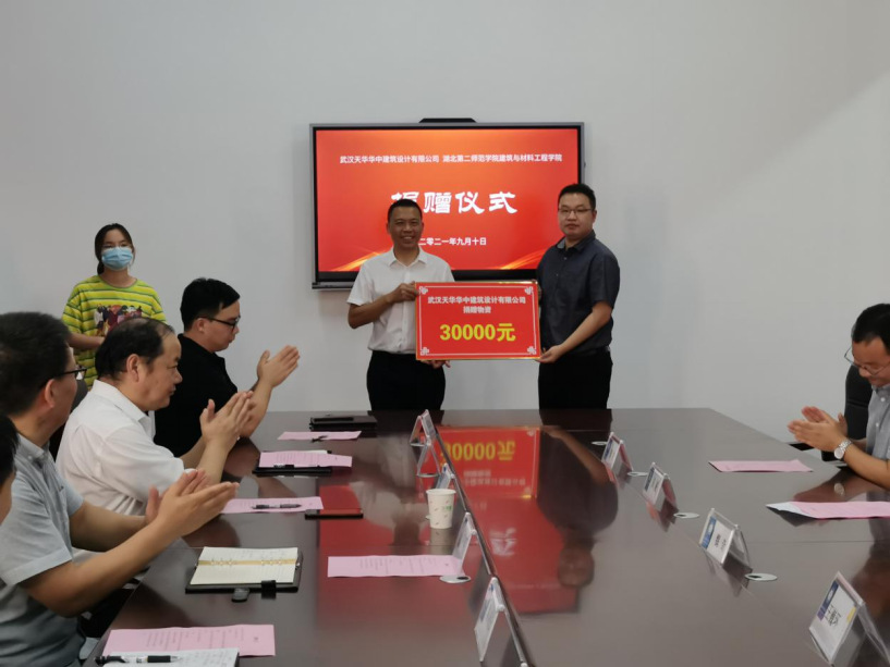 本网讯(通讯员 金雪莹)9月10日下午,建筑与材料工程学院在学院会议室举行捐赠仪式。会议由副院长程志远主持,天华华中建筑设计有限公司副总经理高霰一行、建材学院班子成员、各科室主管、部分教师和学生代表参与。校党委副书记许邦官参加并讲话。