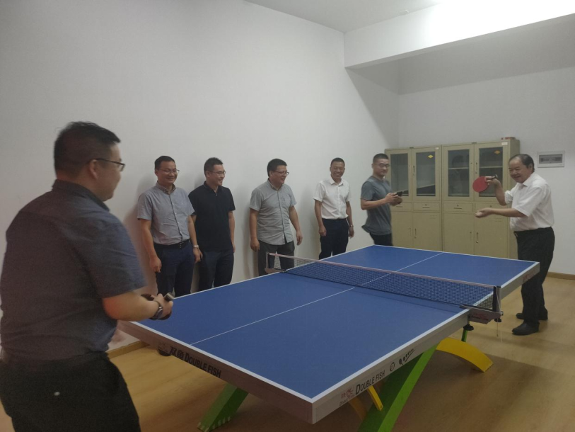 会后,天华公司代表参观新搬迁后建材学院的办公环境,体验了所捐赠的乒乓球设备。