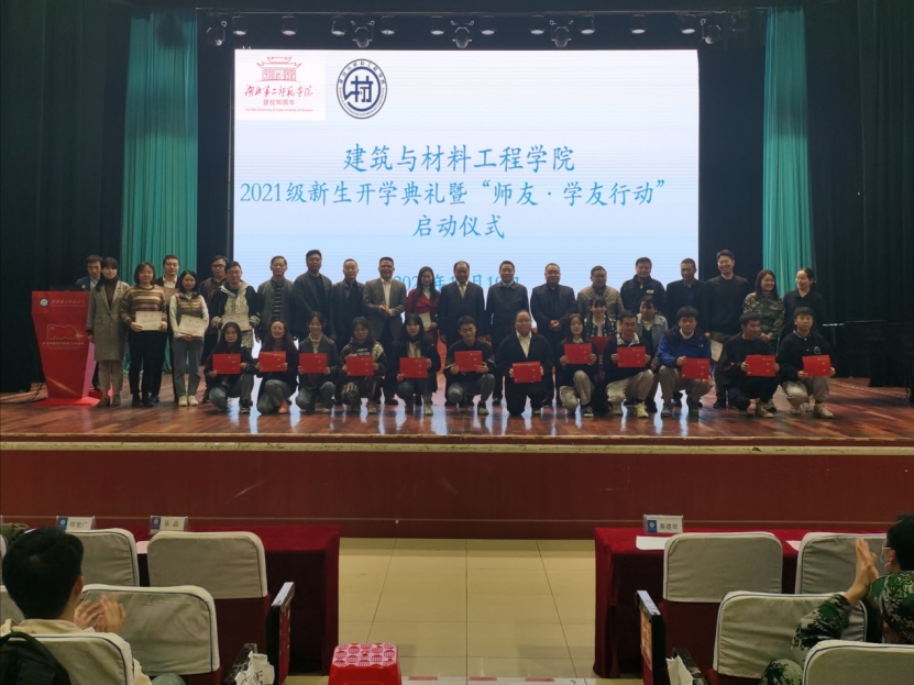 本网讯(通讯员 周雨洁 尚远行)10月19日中午,建筑与材料工程学院在学校大礼堂召开2021级新生开学典礼暨“师友·学友行动”启动仪式。校党委副书记许邦官出席并讲话,党委学工部和基建处、后勤集团、资产经营公司科室主管以上人员参加。建材学院党委副书记陈凌云主持。