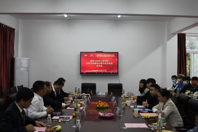 本网讯(通讯员 雷诺 尚远行)10月31日校庆日下午,建筑与材料工程学院(以下简称建材学院)在学院会议室举行校友联谊座谈会。校党委副书记许邦官出席并讲话。会议由学院党委书记邢宽广主持。