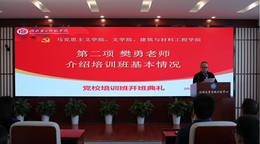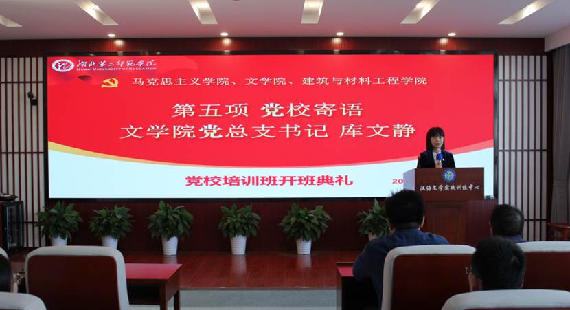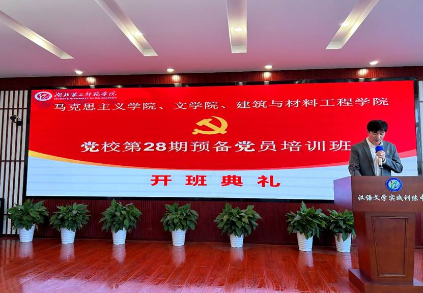 本网讯(通讯员 王骏 汪惠丽)为提高入党积极分子、发展对象、预备党员的思想政治素质和道德修养,用实际行动锤炼自己的党性,培养和树立良好的品格。11月10日中午,由马克思主义学院、文学院、建筑与材料工程学院联合主办的湖北第二师范学院党校第272期入党积极分子、第47期发展对象、第28期预备党员培训班在一号教学楼文学院“梦想剧场”举行开班典礼。来自三个学院的75名入党积极分子、49名发展对象、87名预备党员(含教师党员2人)共计211名学员参加培训班学习。马克思主义学院党总支书记金殿中、文学院党总支书记库文静、副书记胡鹏、建筑与材料工程学院党委书记毕松涛出席典礼。
