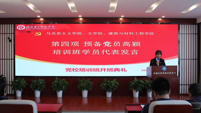建筑与材料工程学院预备党员高颖作为培训班学员代表发言,她动员大家把党校作为互相交流、学习、进步的地方,以党员身份要求自己,做好学习领会、服务他人、锐意进取的表率。