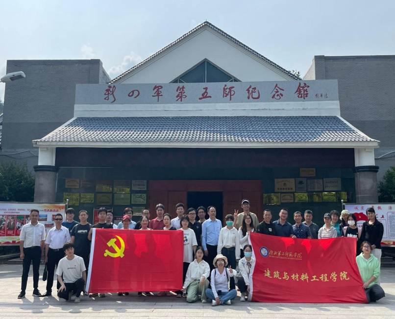 本网讯 (通讯员 周雨洁 叶素珍)为深入开展学习贯彻习近平新时代中国特色社会主义思想主题教育,5月18日,建筑与材料工程学院党委书记毕松涛带队与“师友·学友行动”联系部门国有资产管理处共40名党员师生赴大悟县金岭村和新四军第五师纪念馆开展红色教育活动。