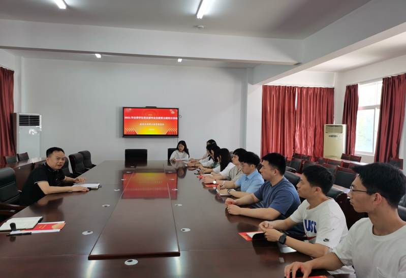 会上,在学生党支部书记何晖老师的主持下,毕业生党员开展了毕业前“五个一”活动,即重温一遍入党誓词、上好一堂专题党课、召开一次座谈会、帮扶一名困难学生、赠送政治生日贺卡,切实增加毕业生党员的思想自觉、政治自觉和行动自觉。