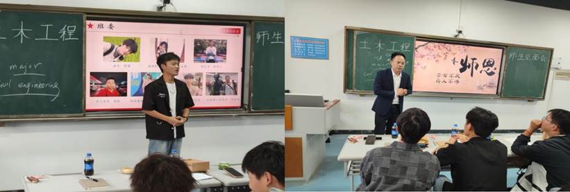 本网讯(通讯员 贾鑫 胡鑫 谭潇)10月7日下午,建筑与材料工程学院23级土木工程系一班在四号教学楼4307室展开了以熟络师生为目的的师生见面会,建筑与材料学院党委书记毕松涛及23级土木一班全体老师,系主任聂琼主持会议。