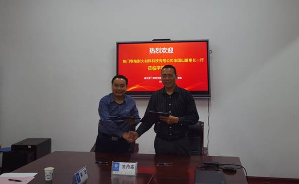 本网讯(通讯员 宋鲁侠)10月13日下午,荆门零陵耐火材料科技有限公司董事长余国山一行赴我院参观考察,举行校企合作交流,签定科研和就业合作协议。会议由院长王超主持,校友工作与合作发展处副处长周静、副院长乐垚参加。