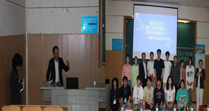 本网讯(通讯员 余淅)为激发高年级学生的考研热情,4月18日晚18:20在阶梯教室2,我院开展筑梦小才子“星光不问赶路人. 时光不负有心人”考研经验分享会。党委书记毕松涛率叶素珍老师、谢浩老师、余琳琳老师出席活动。本次分享会邀请了考研成功上岸的曹承林、李胤、徐恒三位同学进行经验分享,他们分别就自己的考研经历、备考策略以及目标院校的选择等方面进行了深入分享。