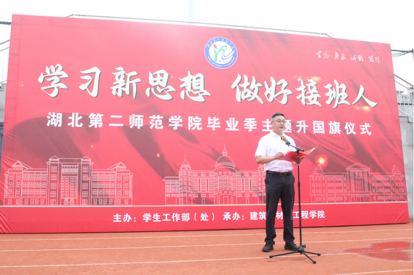 本网讯(通讯员 池家飞)又是一年毕业季,6月17 日7时,学校在校田径场举行毕业季主题升国旗仪式,校党委常委、副校长陈勇出席并讲话。主题升国旗仪式由党委学生工作部主办,建筑与材料工程学院承办。