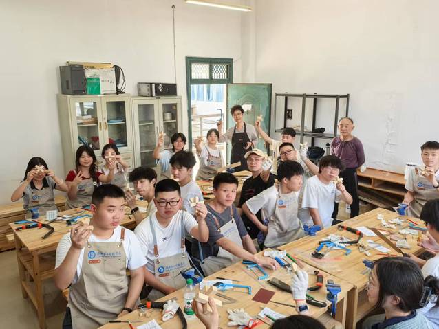 在工作室里,张教授与周老师手把手指导,带领同学们体验木雕木工实操全过程,学生们都完成了鲁班锁、木饰挂件等作品。张老师对同学们积极学习木雕的热情深感欣喜,在互动中,她一再表达殷切期盼:“希望更多年轻人能爱上木雕、学习木雕, 将这份传统手艺用心传承下去。”